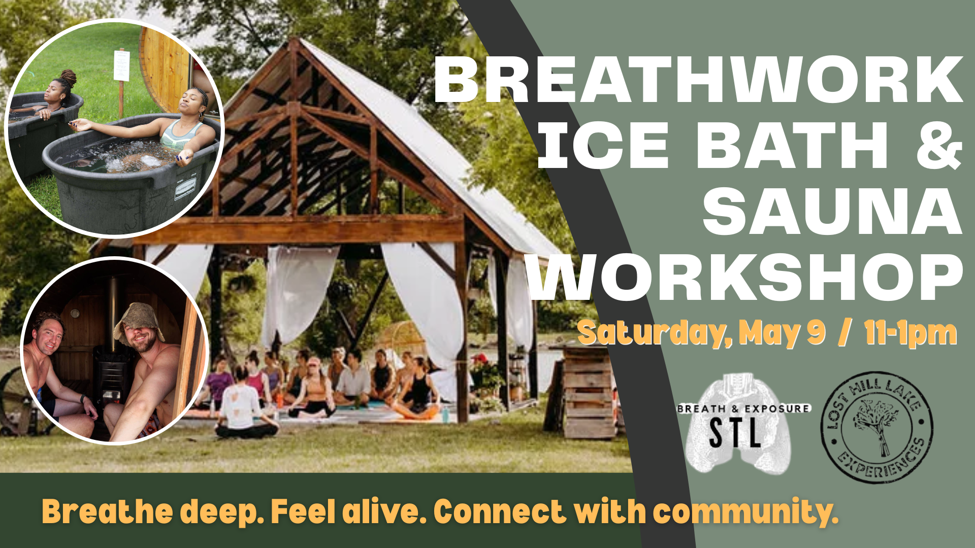 Join us for a rejuvenating experience at Lost Hill Lake Wedding & Events. This workshop combines the power of breathwork with the invigorating effects of ice baths and saunas. Release stress, boost your immune system, and leave feeling refreshed and energized.
