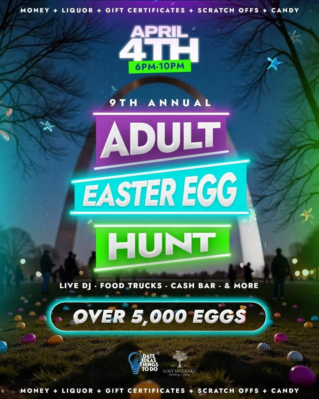 Brought to you by Date Ideas and Things to Do STL, the Adult Easter Egg Hunt celebrates 8 years at Lost Hill Lake.