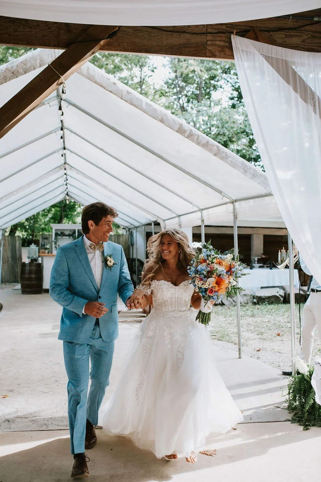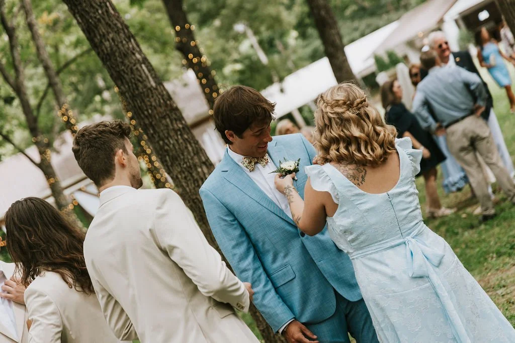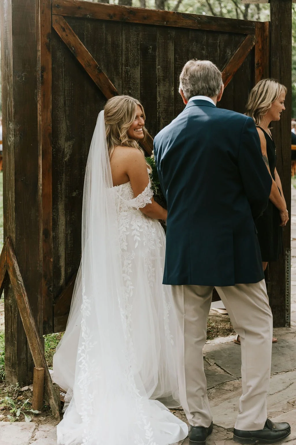 Ashley and William started their day in a way that perfectly reflected their laid-back, personal approach. The girls spent the morning getting ready at a nearby property, while the guys brought an RV on-site to the property—creating a relaxed, comfortable space of their own. (Did you know we now offer RV spaces at Lost Hill Lake?) The morning unfolded slowly, with friends stepping in for hair and makeup, laughter echoing through the trees, and final details coming together.