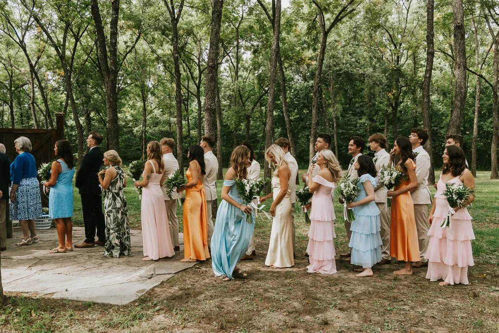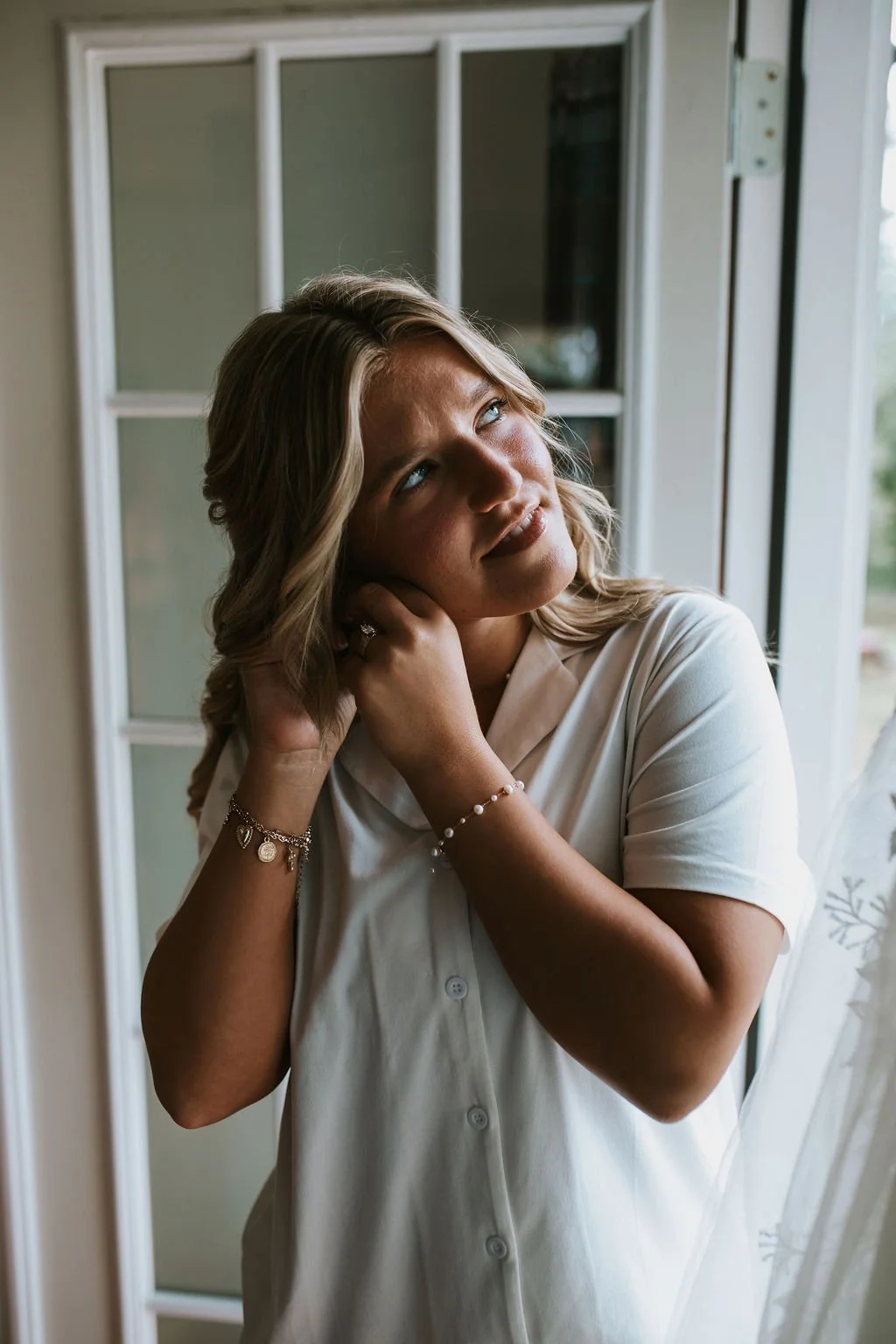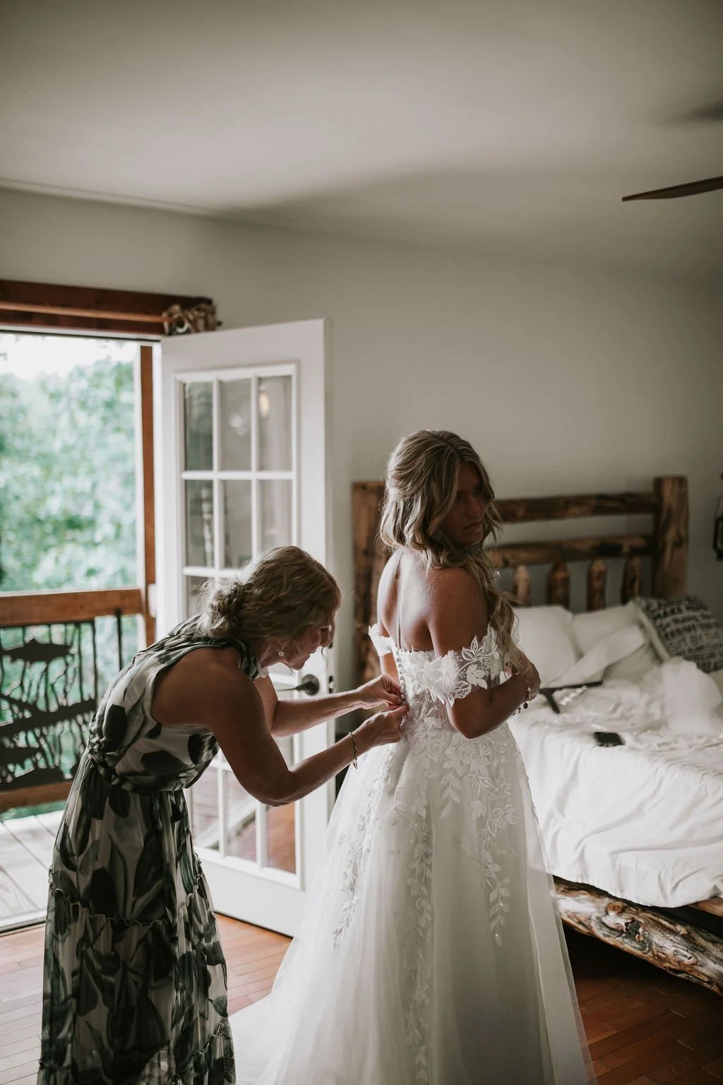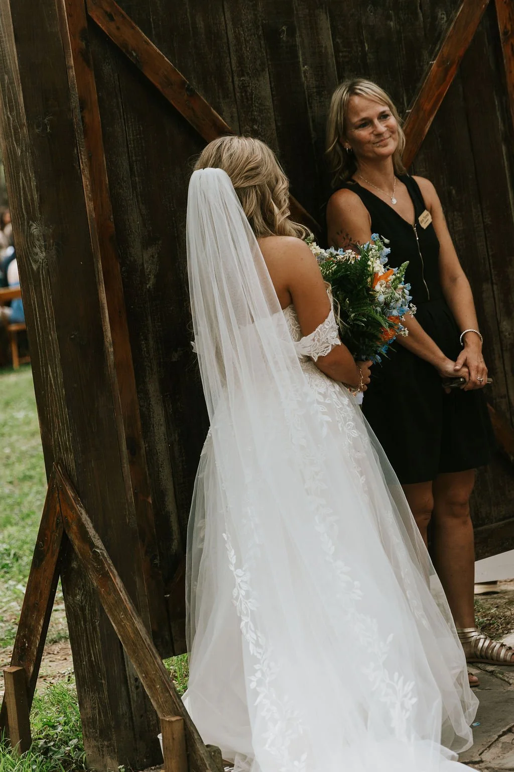 Ashley and William started their day in a way that perfectly reflected their laid-back, personal approach. The girls spent the morning getting ready at a nearby property, while the guys brought an RV on-site to the property—creating a relaxed, comfortable space of their own. (Did you know we now offer RV spaces at Lost Hill Lake?) The morning unfolded slowly, with friends stepping in for hair and makeup, laughter echoing through the trees, and final details coming together.