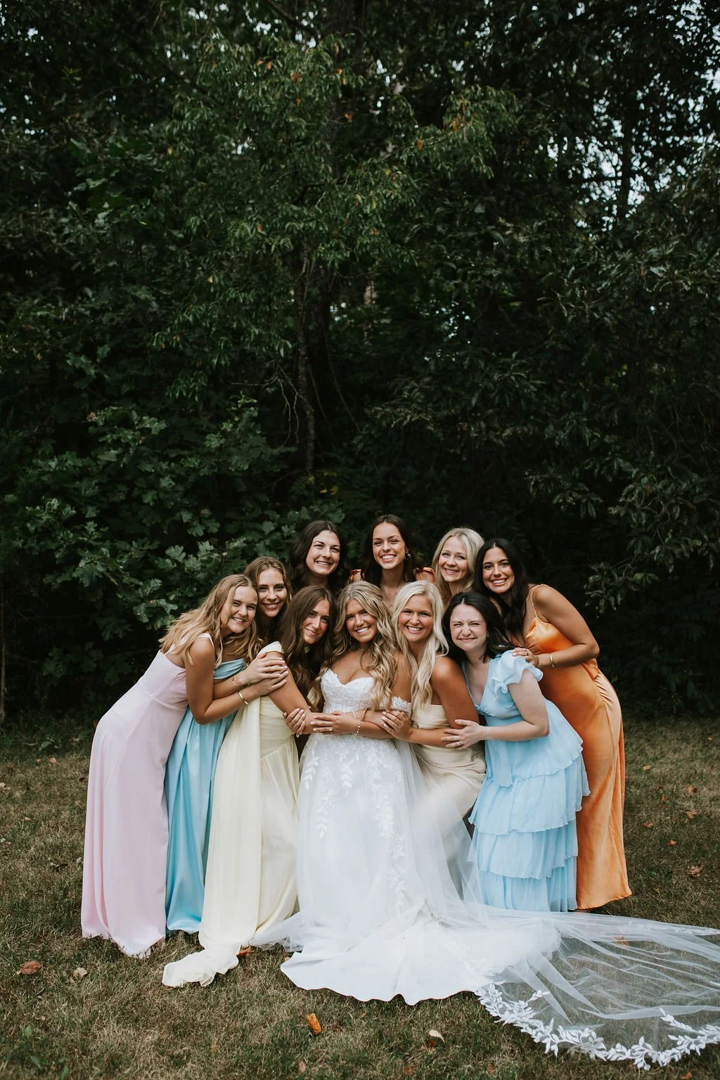 Following the ceremony, guests flowed into cocktail hour, where a relaxed, self-curated grazing experience allowed everyone to mingle and soak in the surroundings. Family photos, wedding party portraits, and quiet moments between the newlyweds filled the space as the celebration continued.