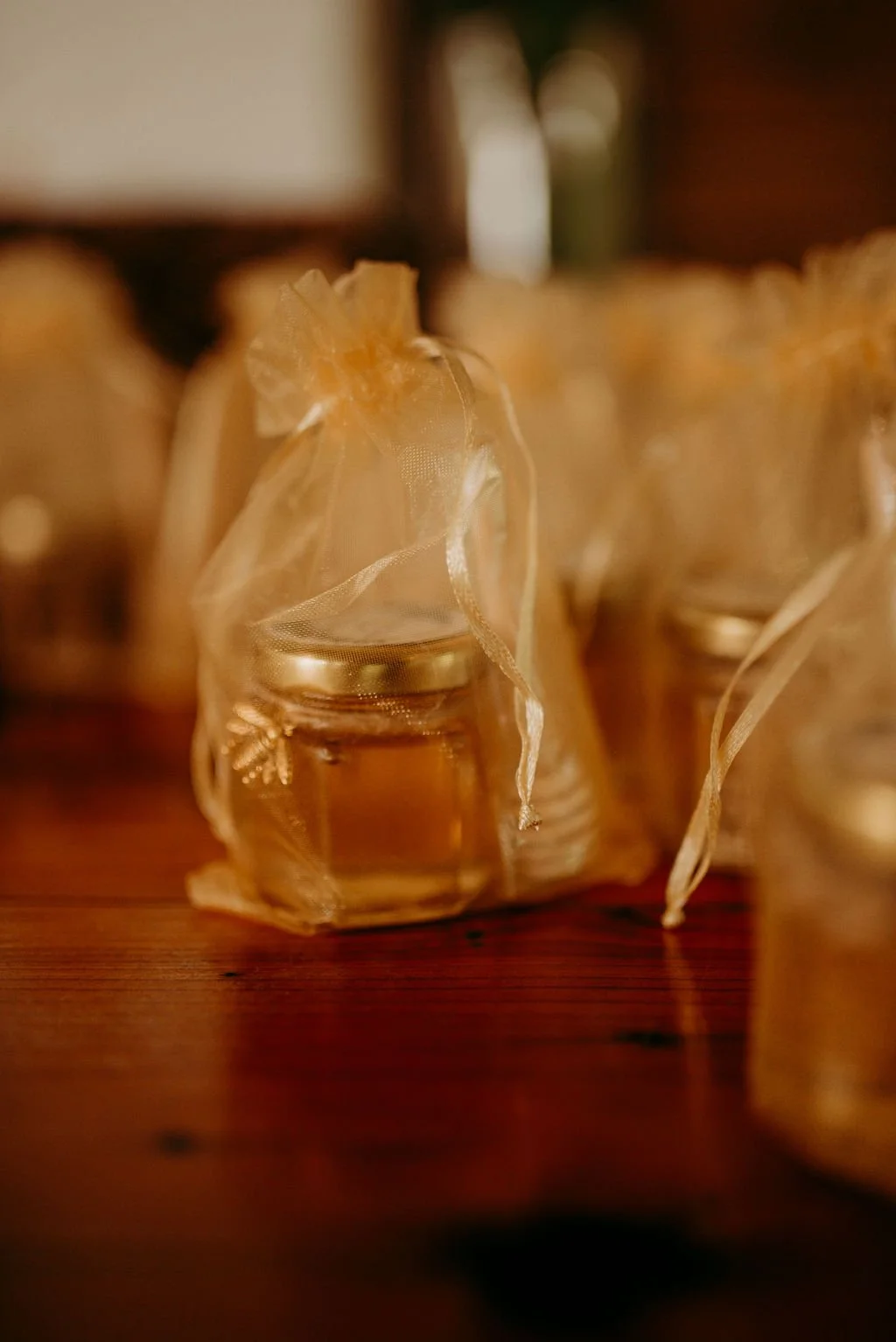 The couple chose a unity sand ceremony displayed on a small whiskey barrel — a meaningful moment that symbolized their love and commitment. As the ceremony concluded, the floral arrangements from the arbor were repurposed to the reception space, bringing the forest’s beauty full circle into the evening celebration.