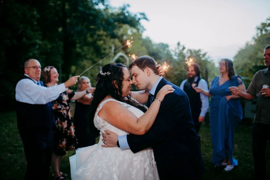 As twilight turned to night, guests gathered for a sparkler-lit first dance, the forest twinkling with fairy lights and laughter. The soft glow of the sparklers, the summer air, and the joy shared among family and friends made it a night to remember.