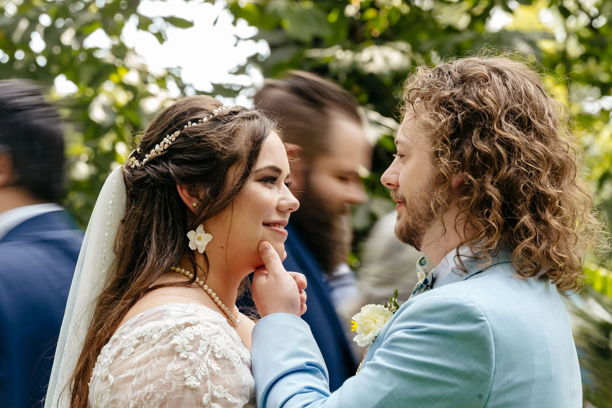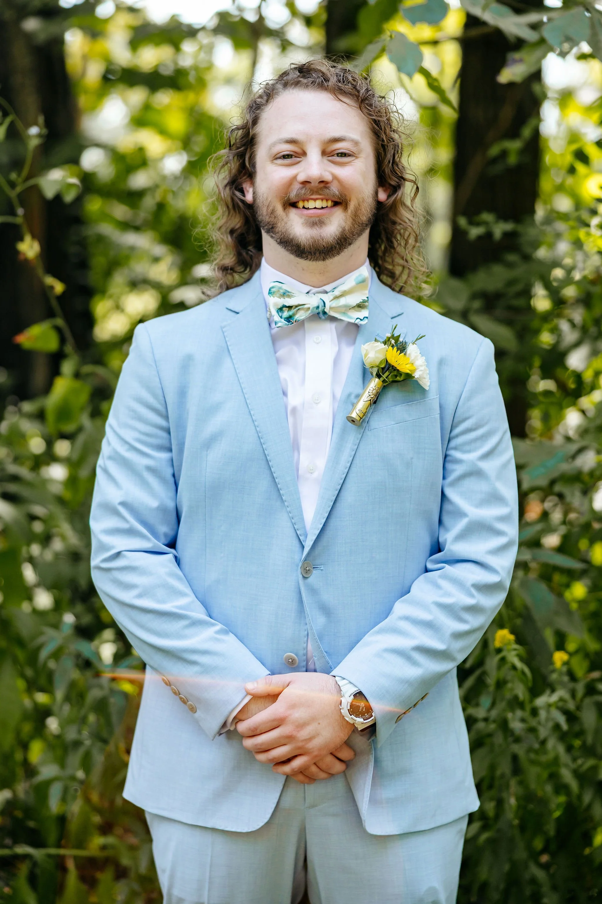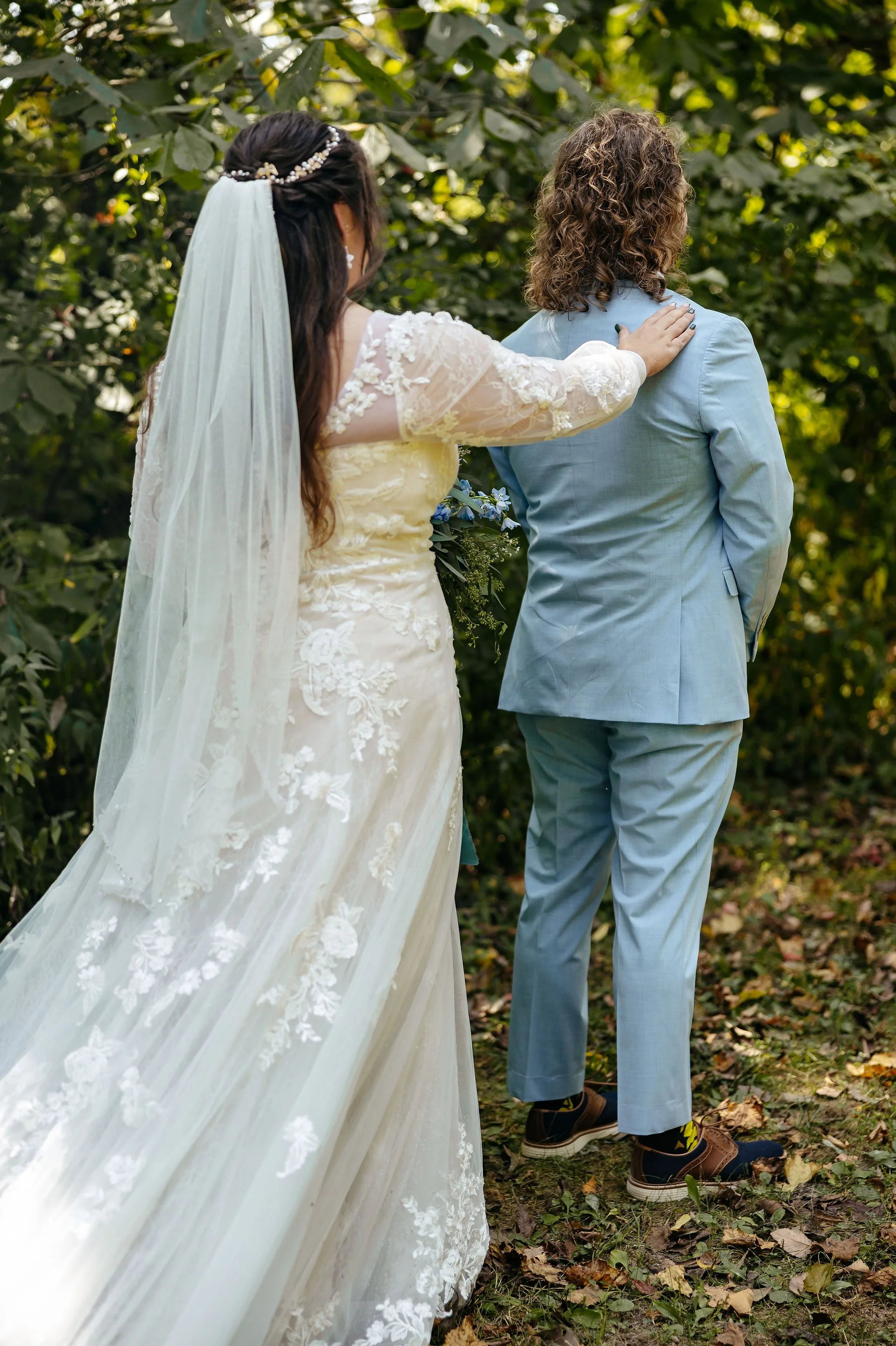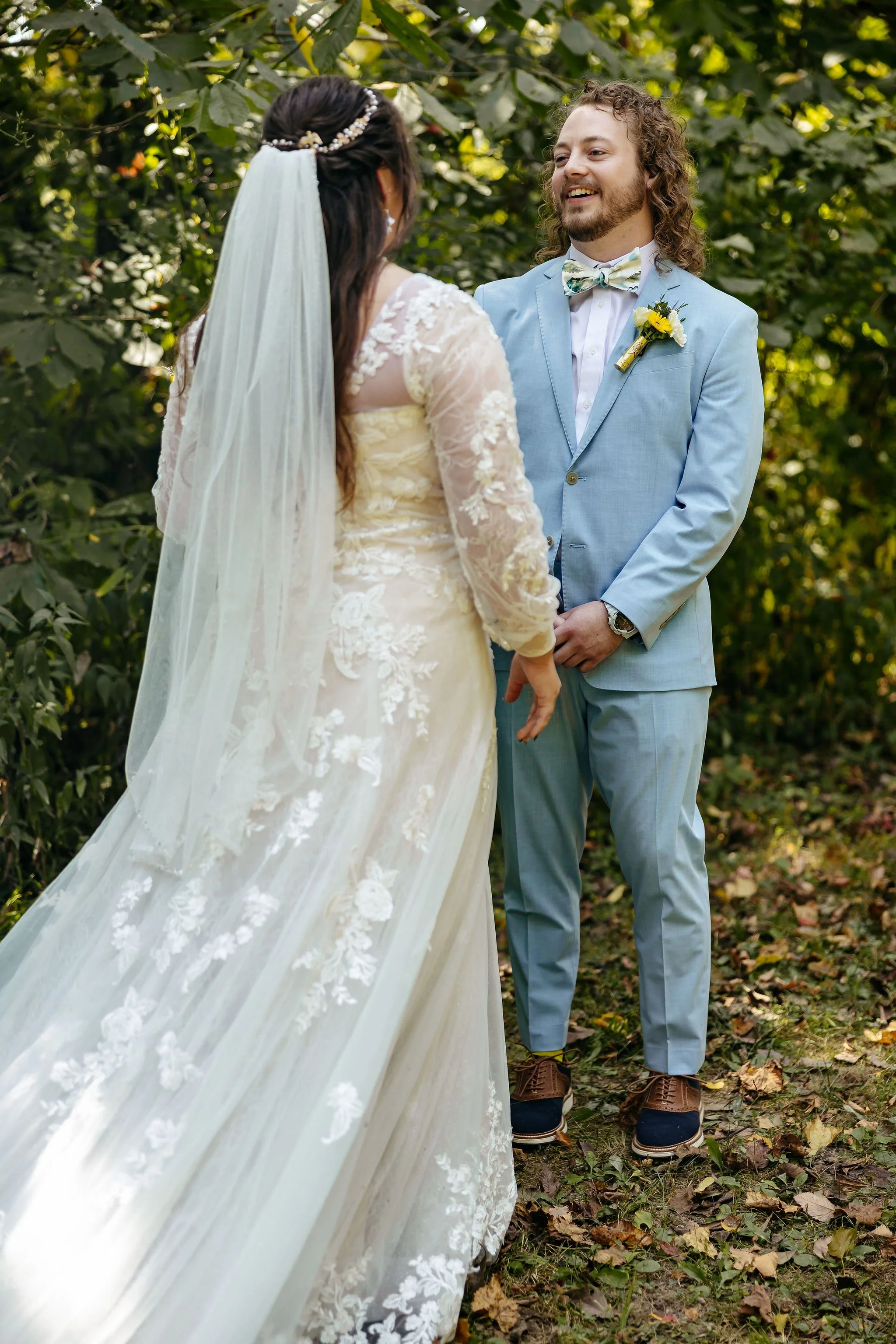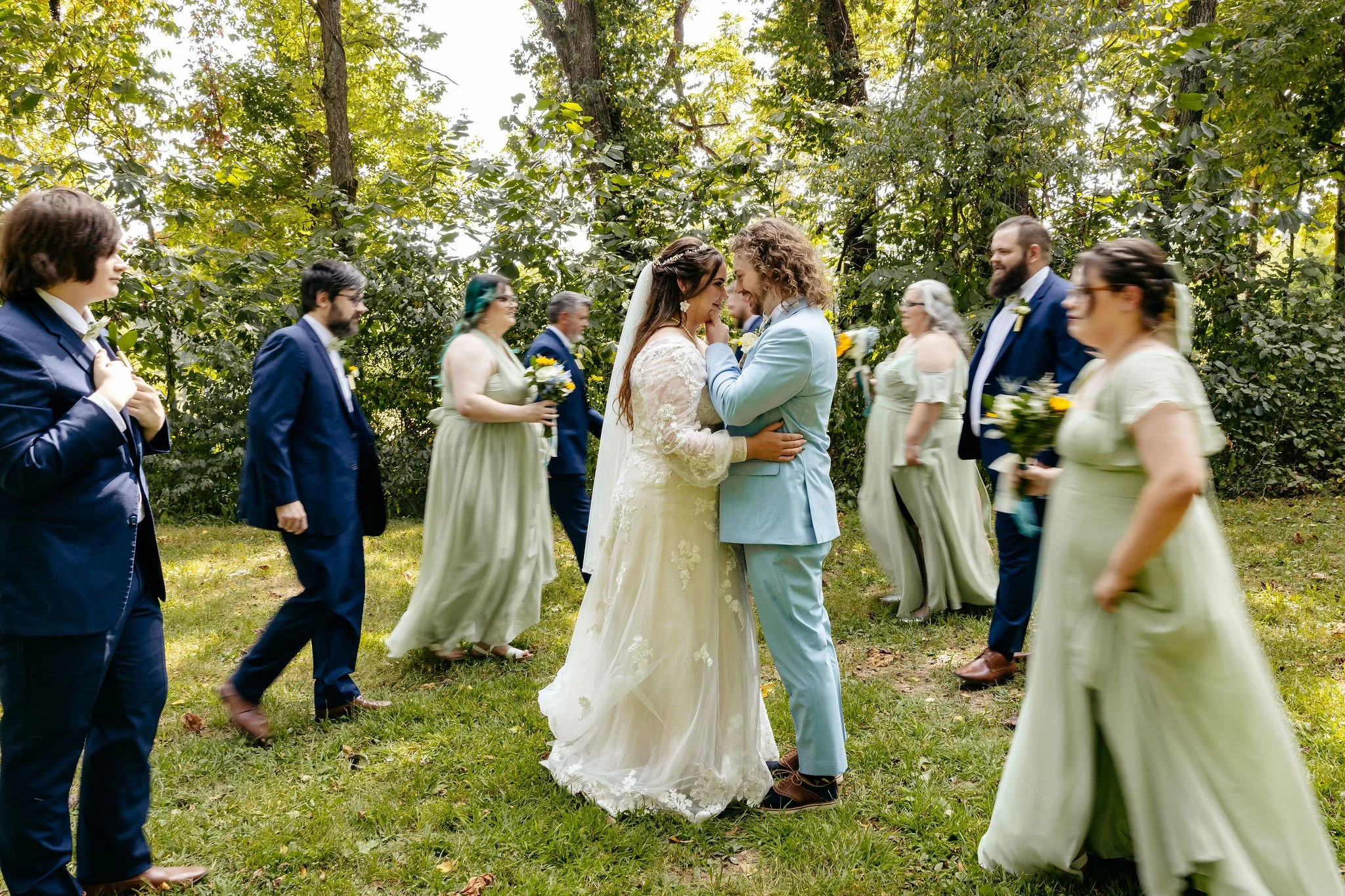 In the early afternoon, Kristen arrived at the venue grounds for their first look - a private moment that set the tone for the rest of the day. Soon after, the entire wedding party gathered for portraits before family joined in for photos ahead of the ceremony.