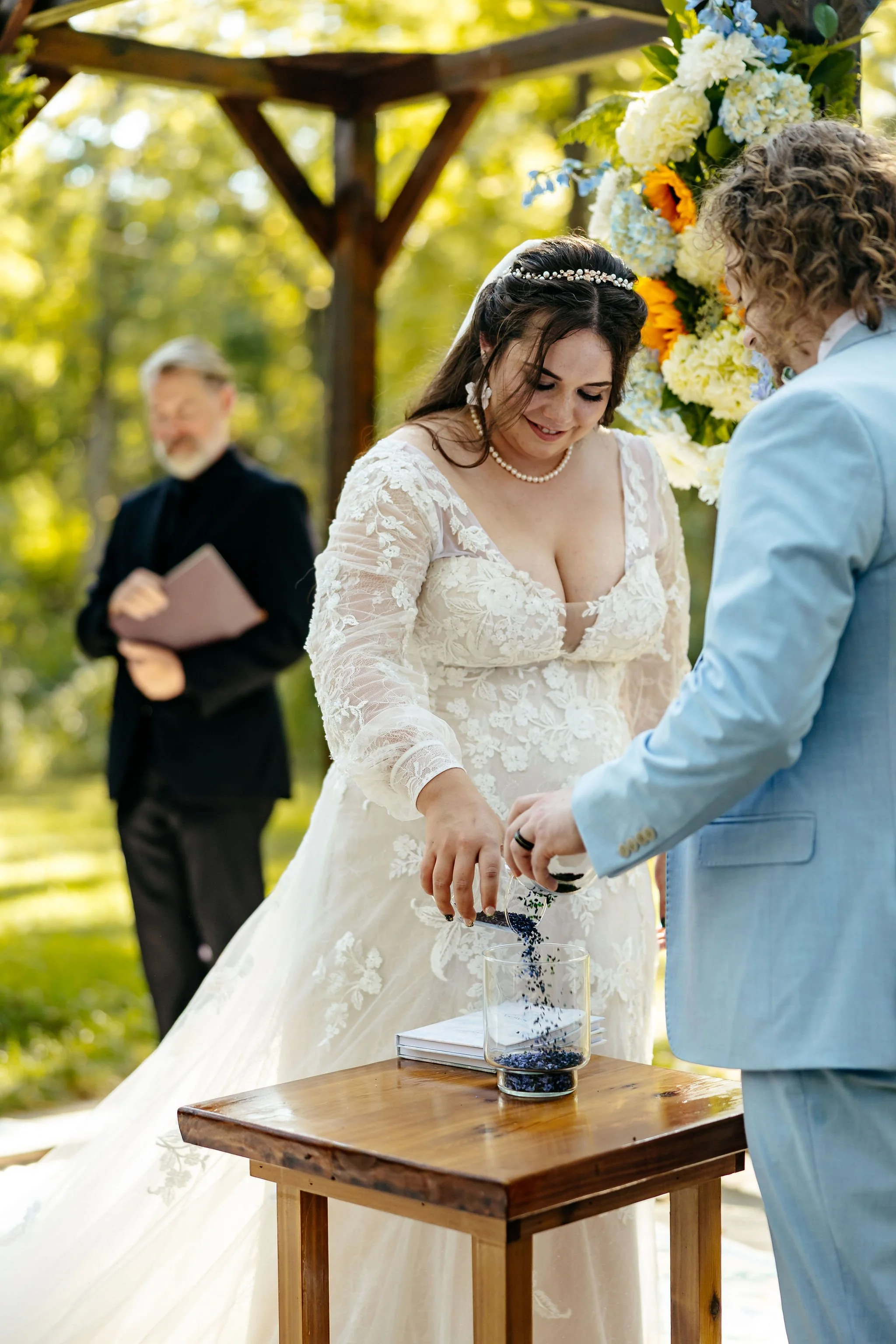The ceremony concluded with a unique glass pour unity ritual, symbolizing the blending of their lives together.