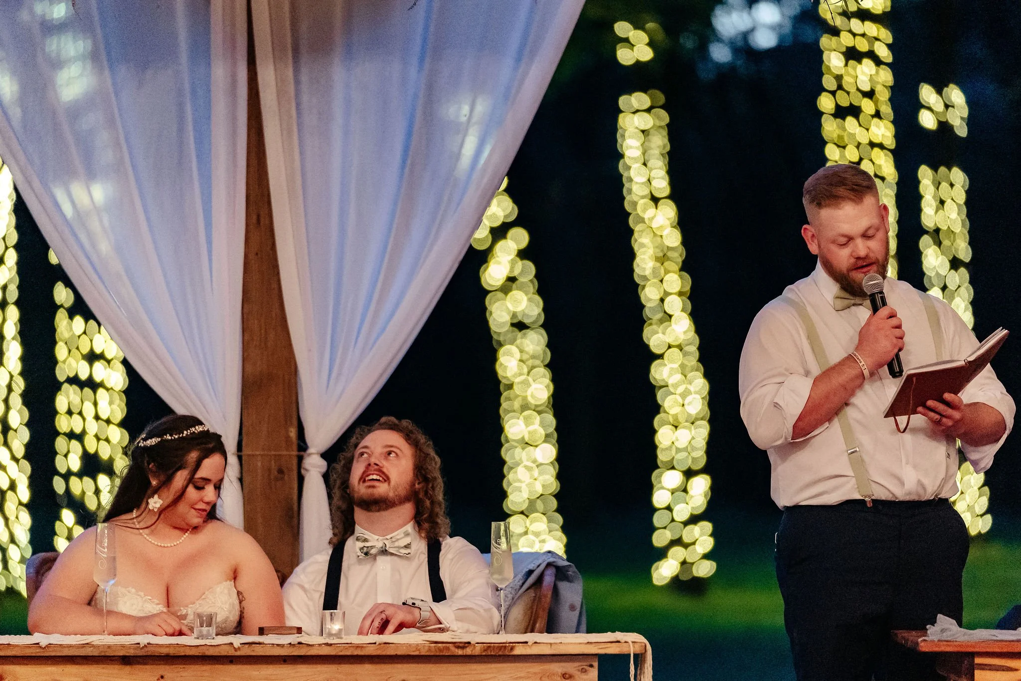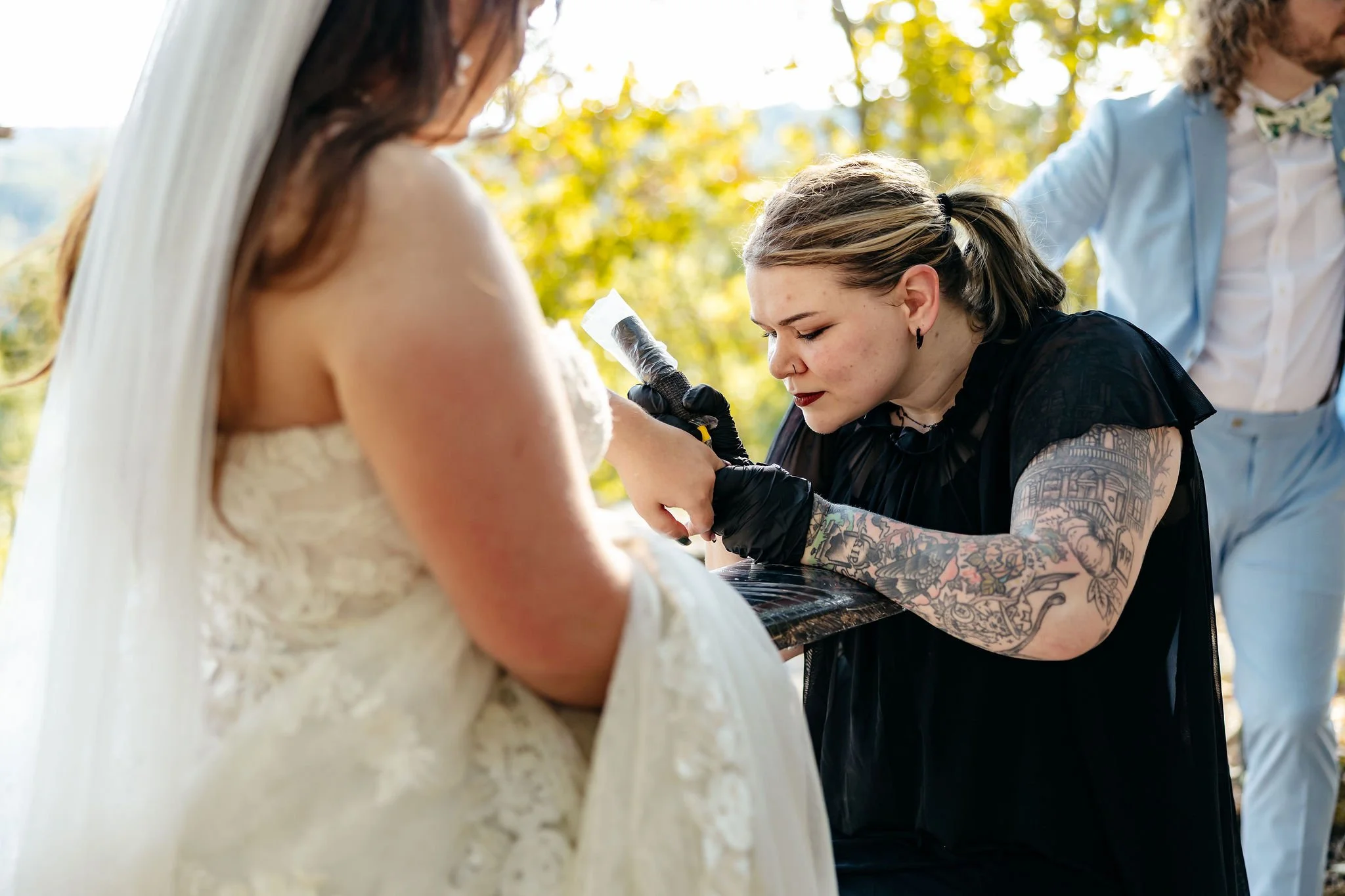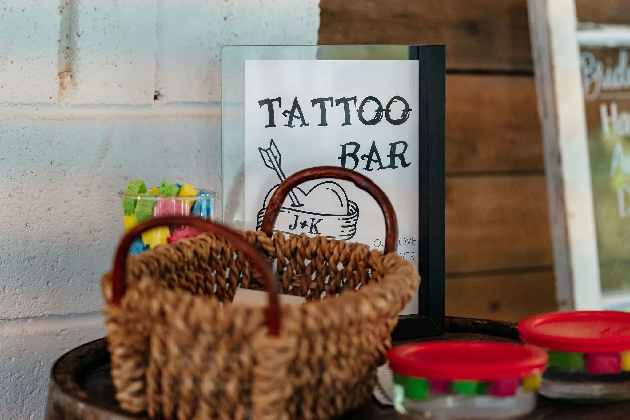 In true Kristen-and-Justin fashion, they added a completely unexpected twist—getting tattoos together on-site during their Thinking Rock moment. Guests were even invited to join the fun with a temporary tattoo station, making for one of the most memorable cocktail hour activities we’ve seen.